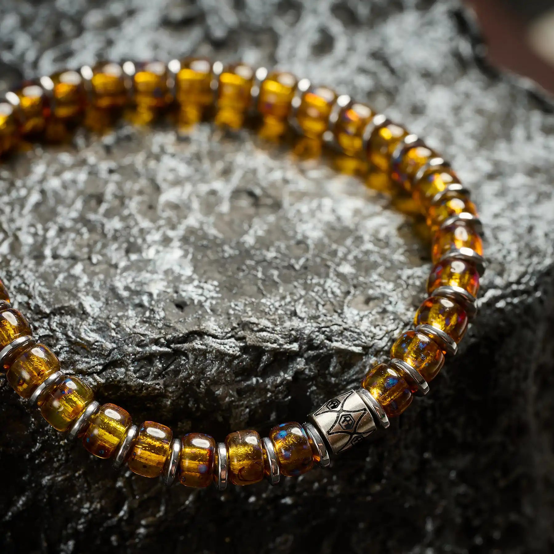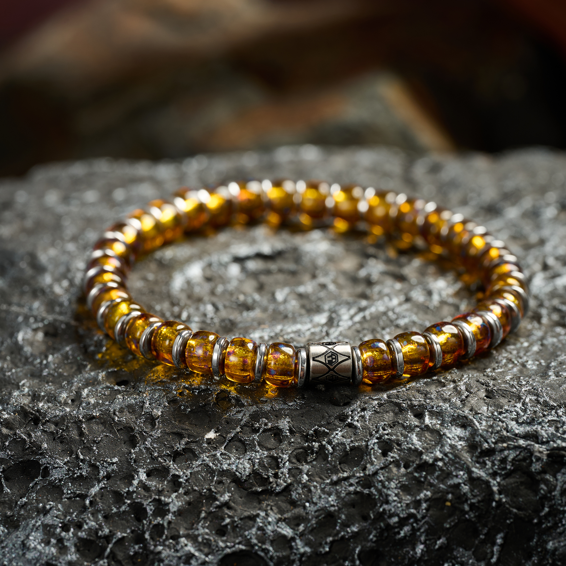 - Resembling liquid morning light, this bracelet is crafted with 6mm Liquid Sunshine Czech glass beads. Each turn captures the warmth and energy of sunlight, bringing positivity and a bright mood. Lightweight and radiant, it’s perfect for everyday wear or adding a unique glow to any outfit.