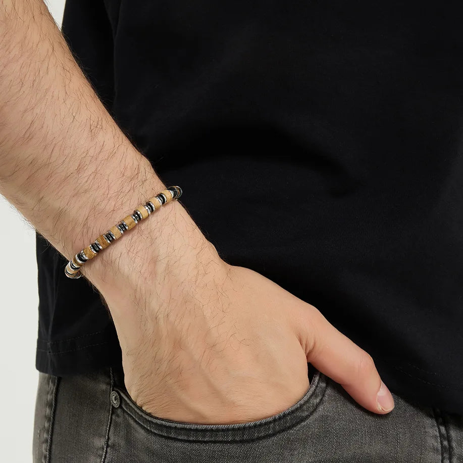 - This bracelet features a refined combination of Picasso Jasper and Hematite.