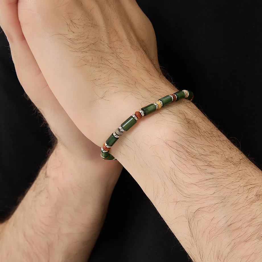 - This bracelet is crafted from natural Green Xiuyu Jade, paired with refined Picasso spindle beads for a balanced, modern luxury aesthetic.